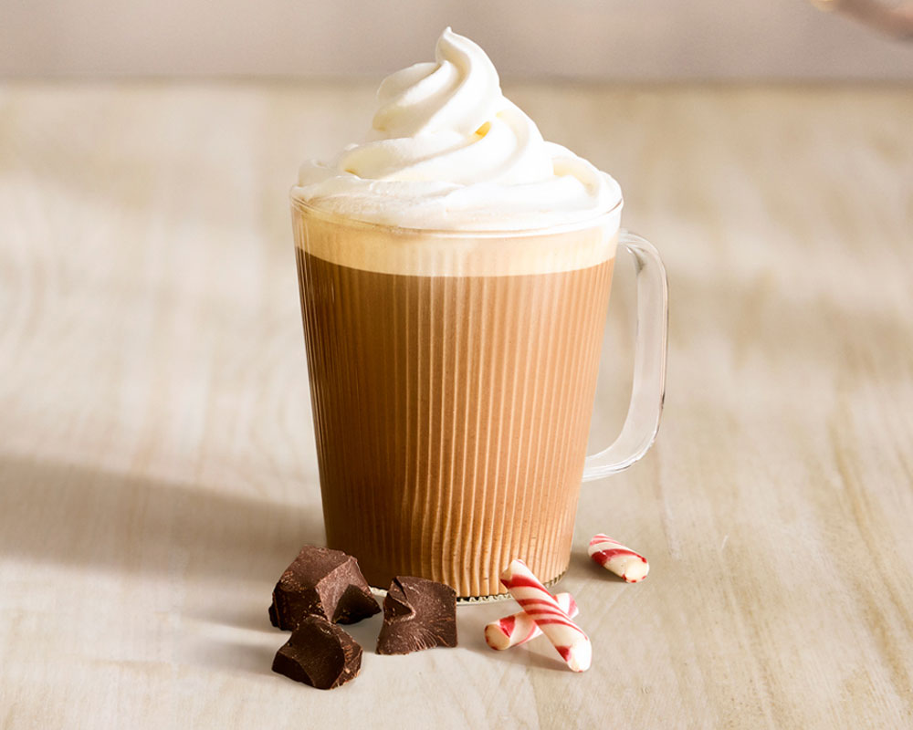 1. Add chocolate sauce, peppermint syrup, and Ultra Coffee to a mug.